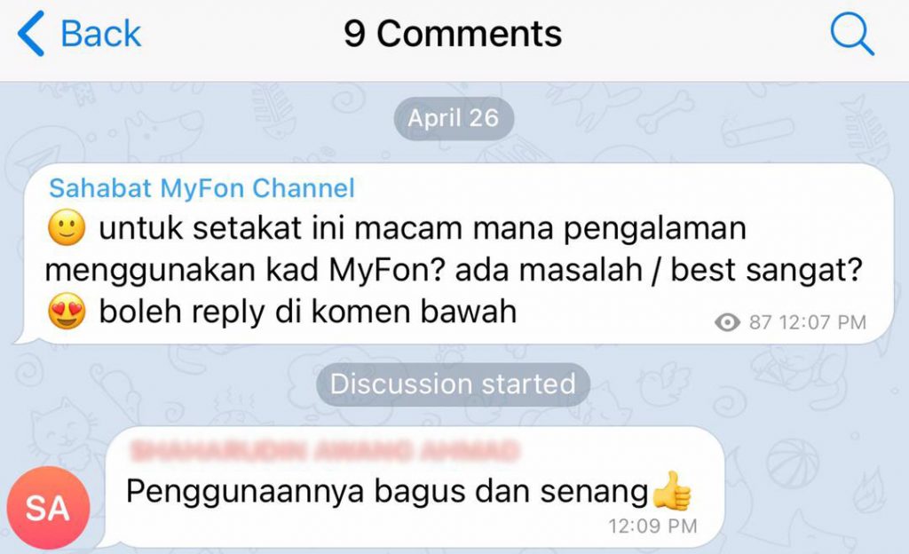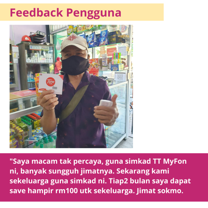 “Guna TT MyFon ni banyak sungguh jimatnya. Tiap-tiap bulan saya dapat jimat hampir RM100 untuk sekeluarga”